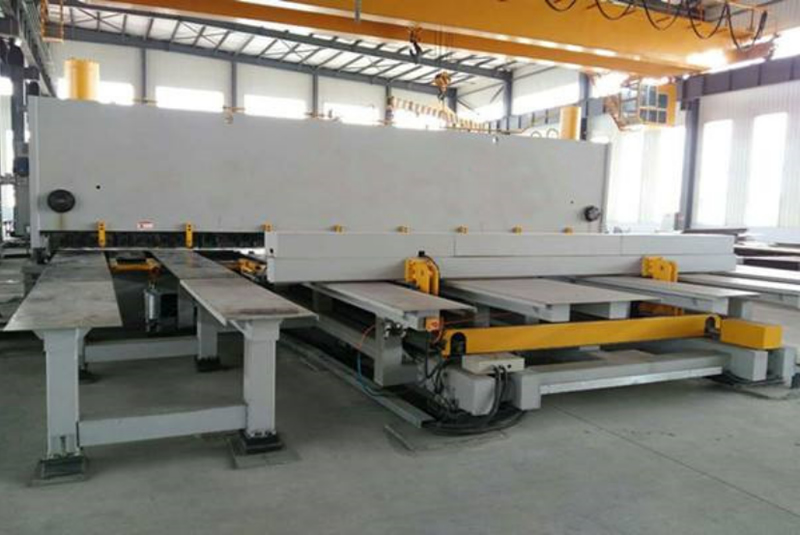 数控剪板机前送料采用单独的数控控制系统,采用整体焊接机架结构,经回火处理,消除内应力、刚性强、稳定性好。